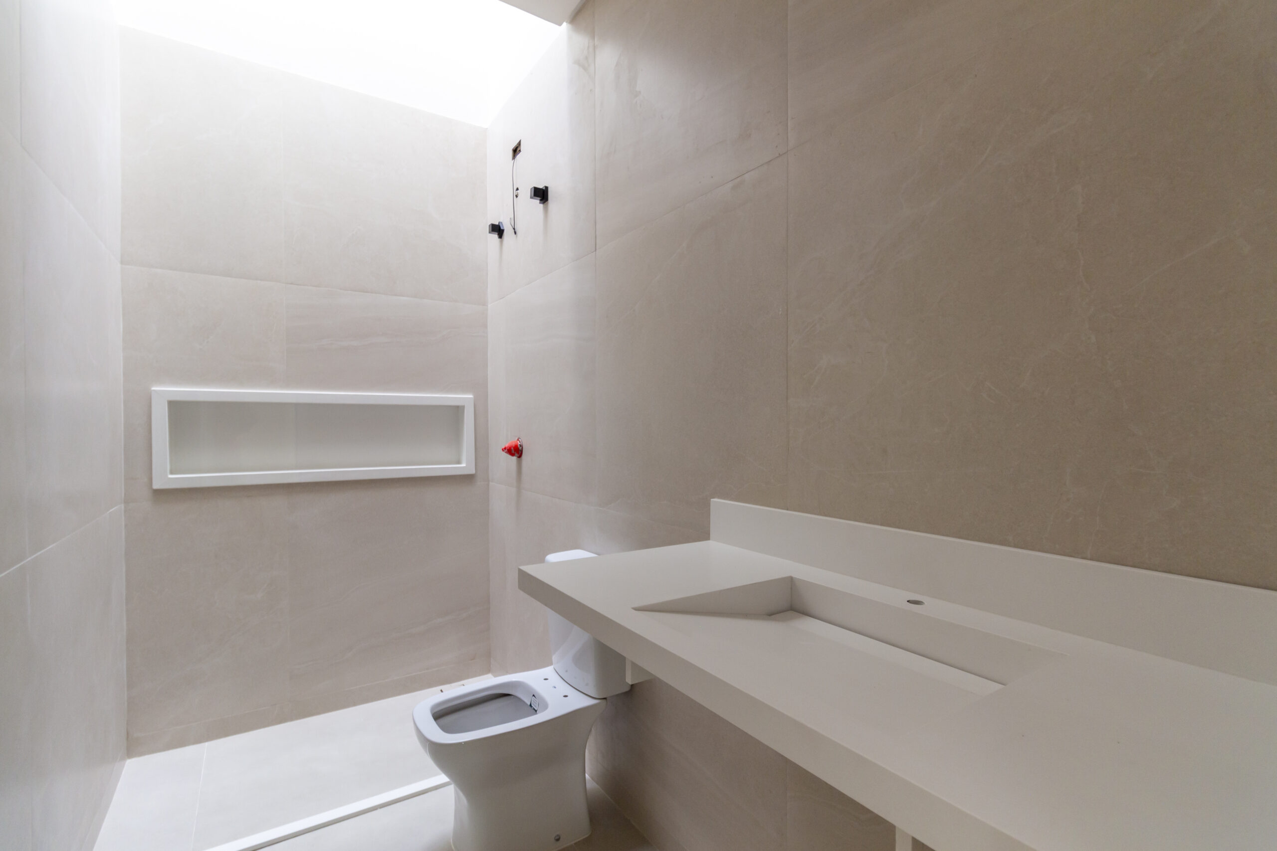 Terraço com churrasqueira a carvão, 4 dormitórios, sendo 2 suítes, paredes duplas com isolamento térmico e acústico, paredes assentadas com tijolo deitado, promovendo maior conforto e segurança, esquadrias em alumínio anodizado, persianas integradas e automatizadas em 3 dormitórios, janelas superdimensionadas, preparação para Jacuzzi, infraestrutura para ar-condicionado em 5 ambientes, piso em porcelanato, teto rebaixado em gesso, aquecimento a gás, central de gás individual para 02 cilindros P-45, ponto hidráulico exclusivo para filtro de água e energia solar.