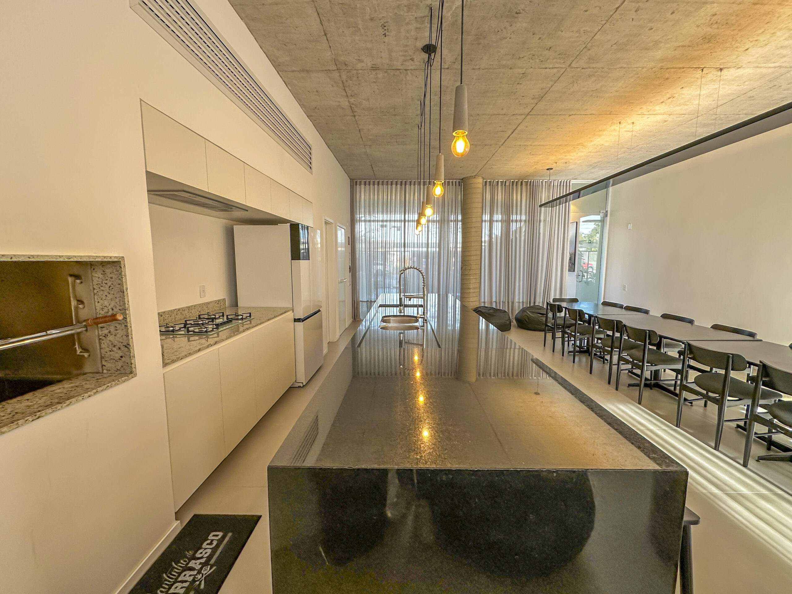 Sala ampla para dois ambientes, integrada com a cozinha gourmet;