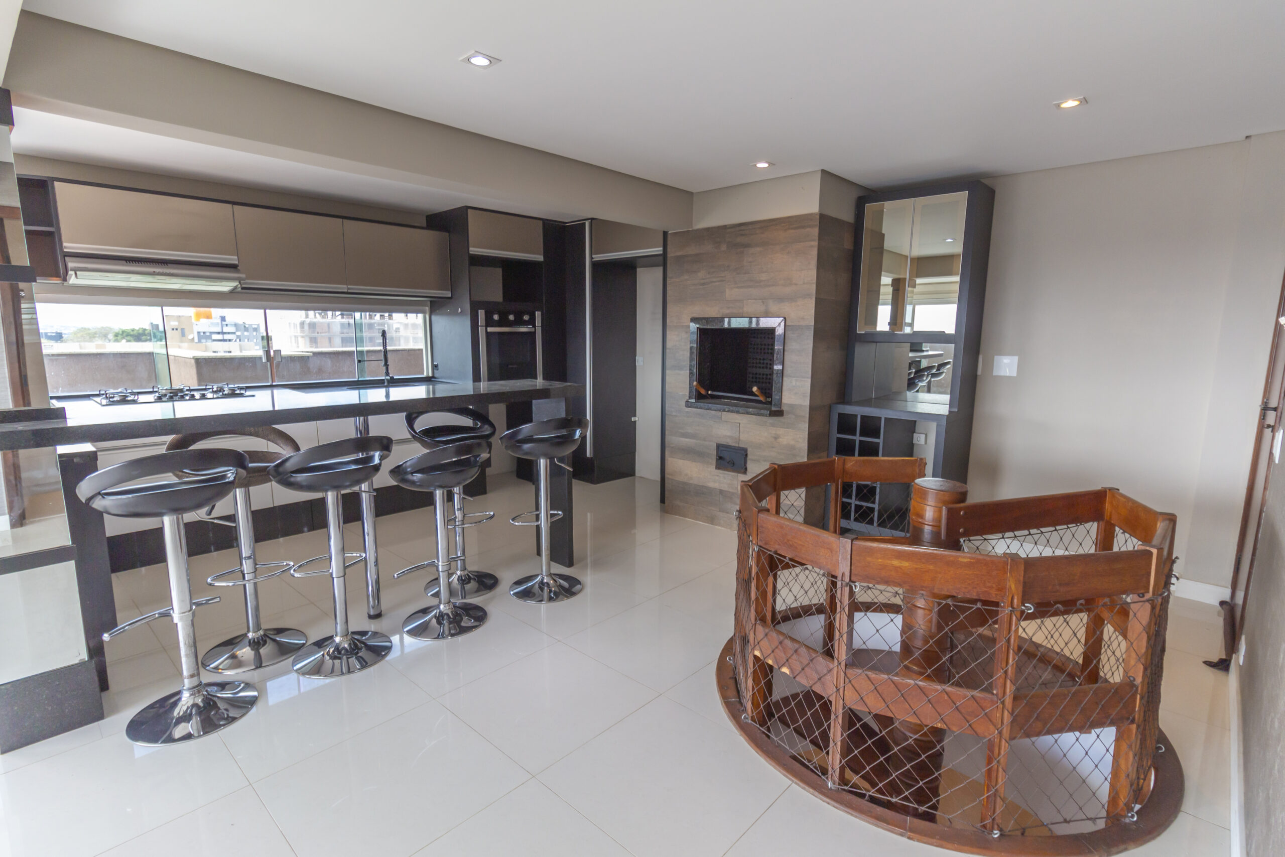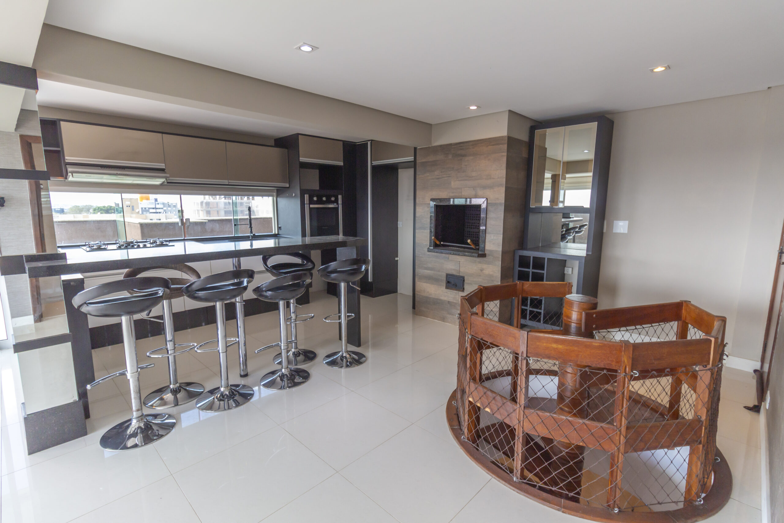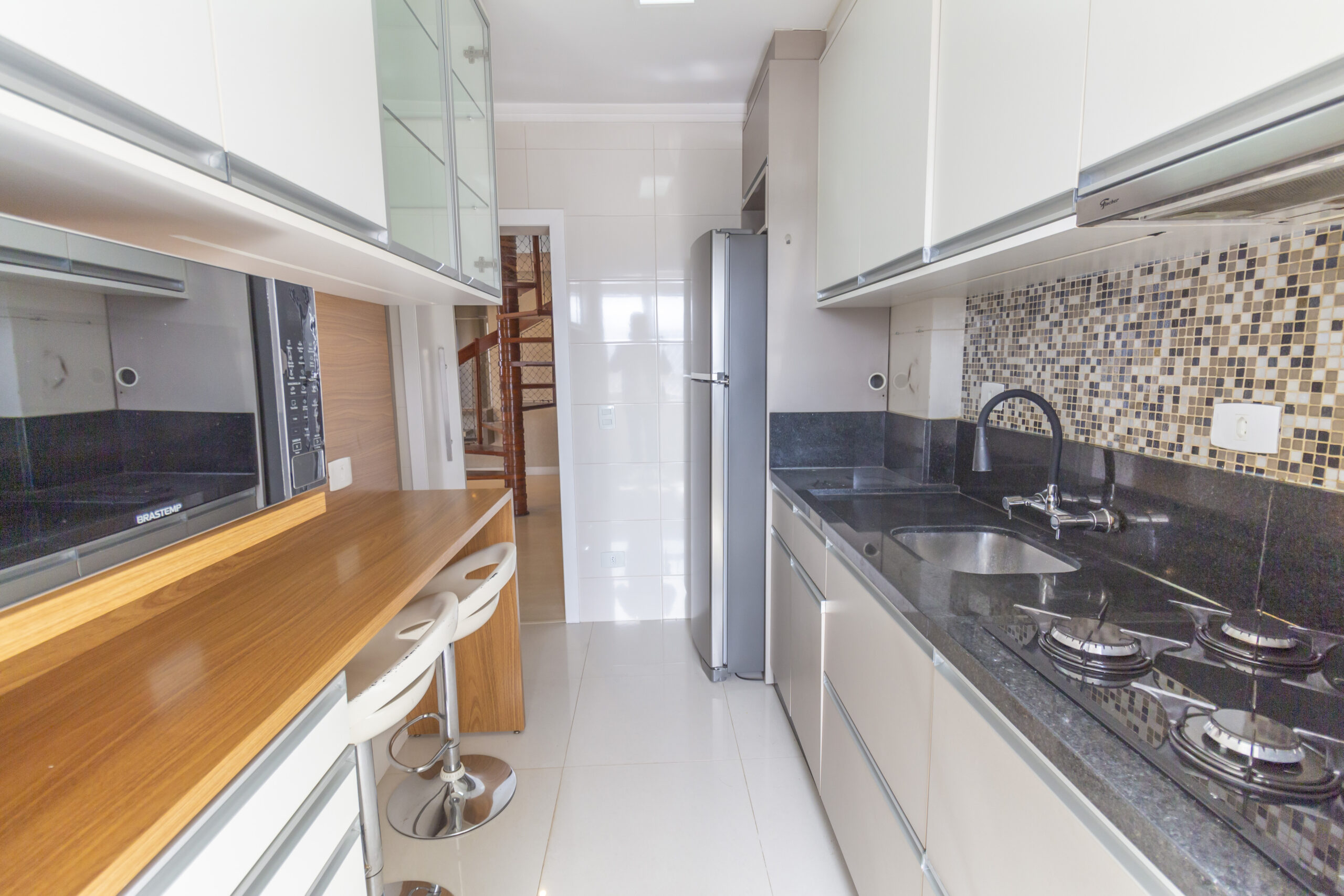 Cozinha gourmet com bancadas em granito;