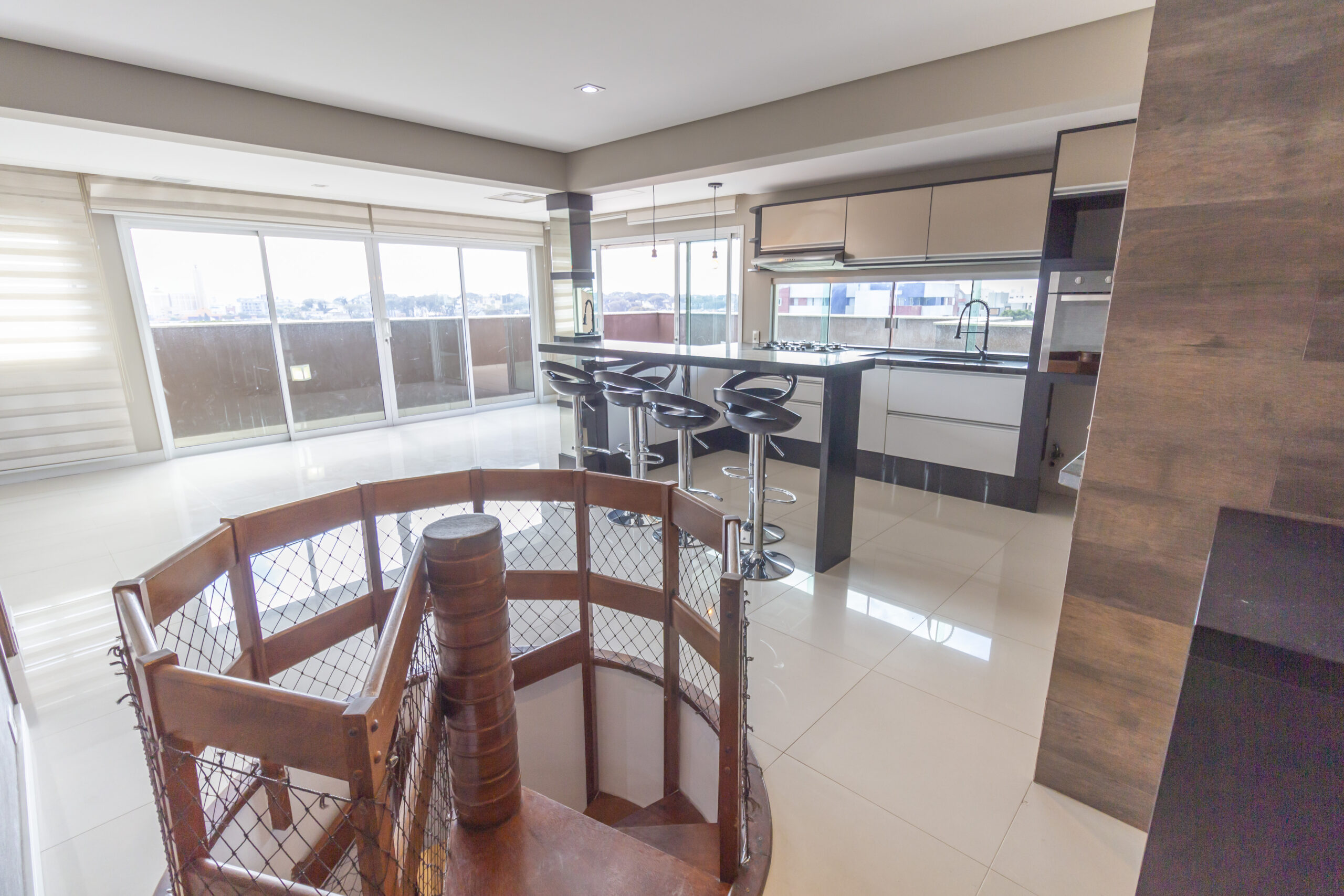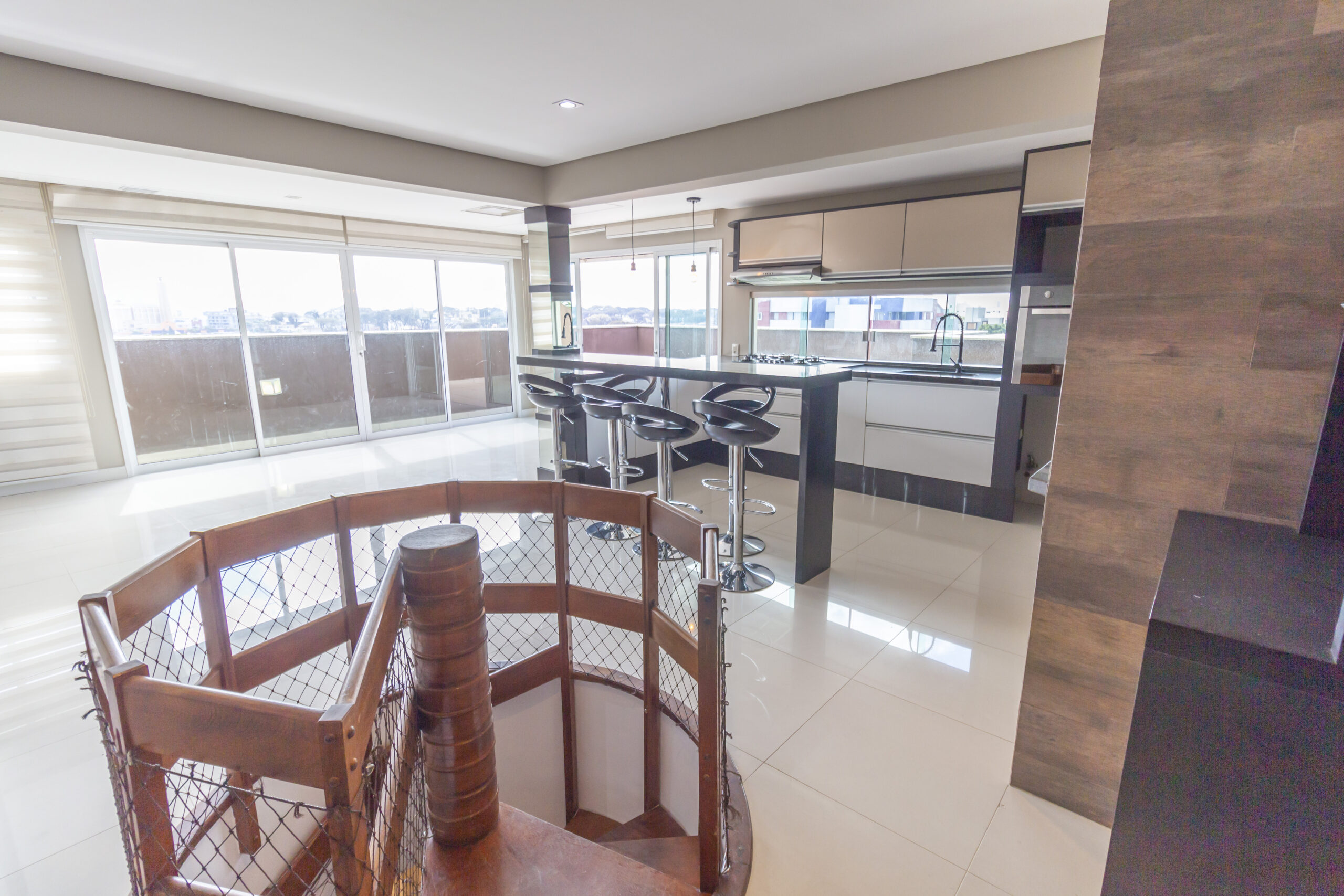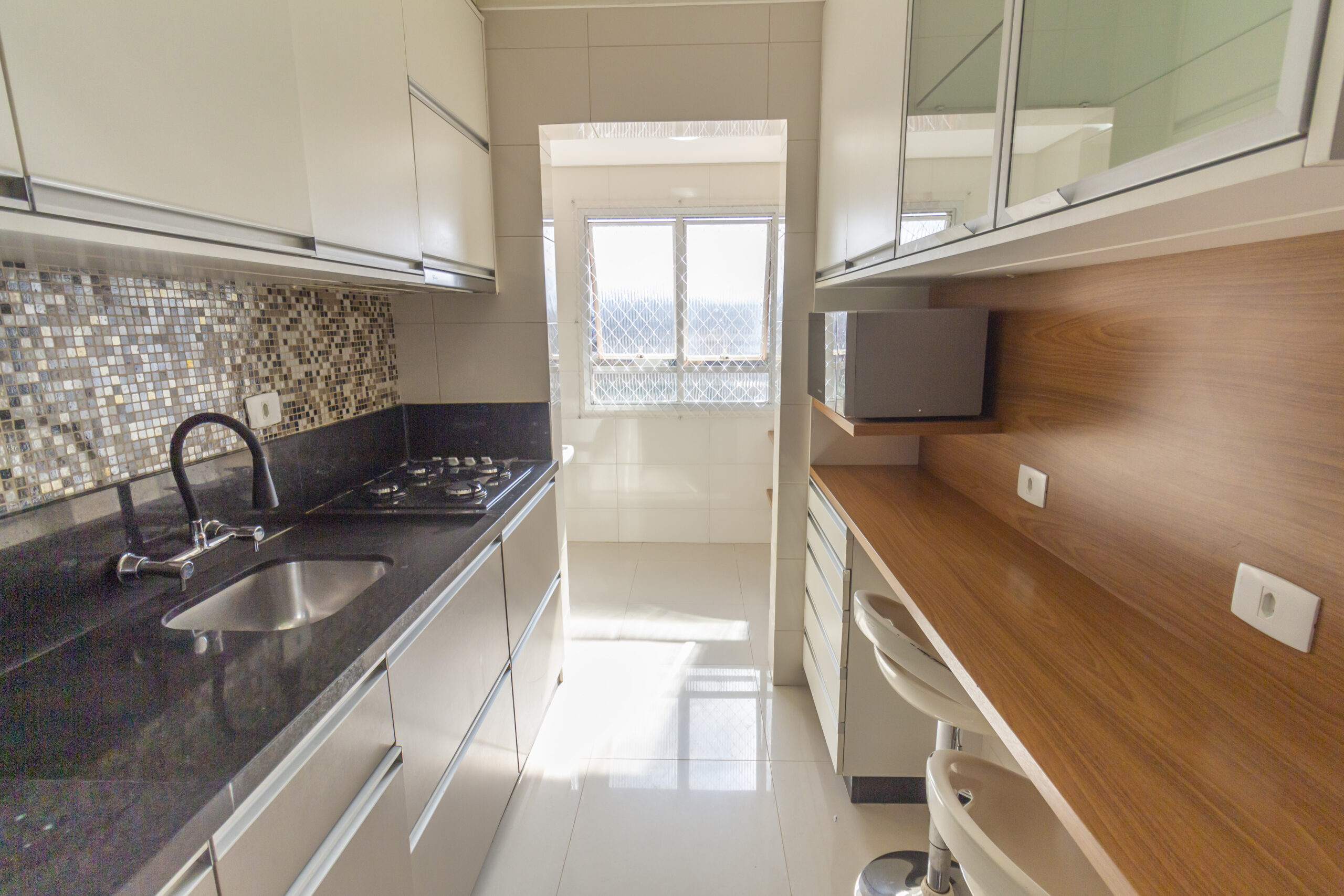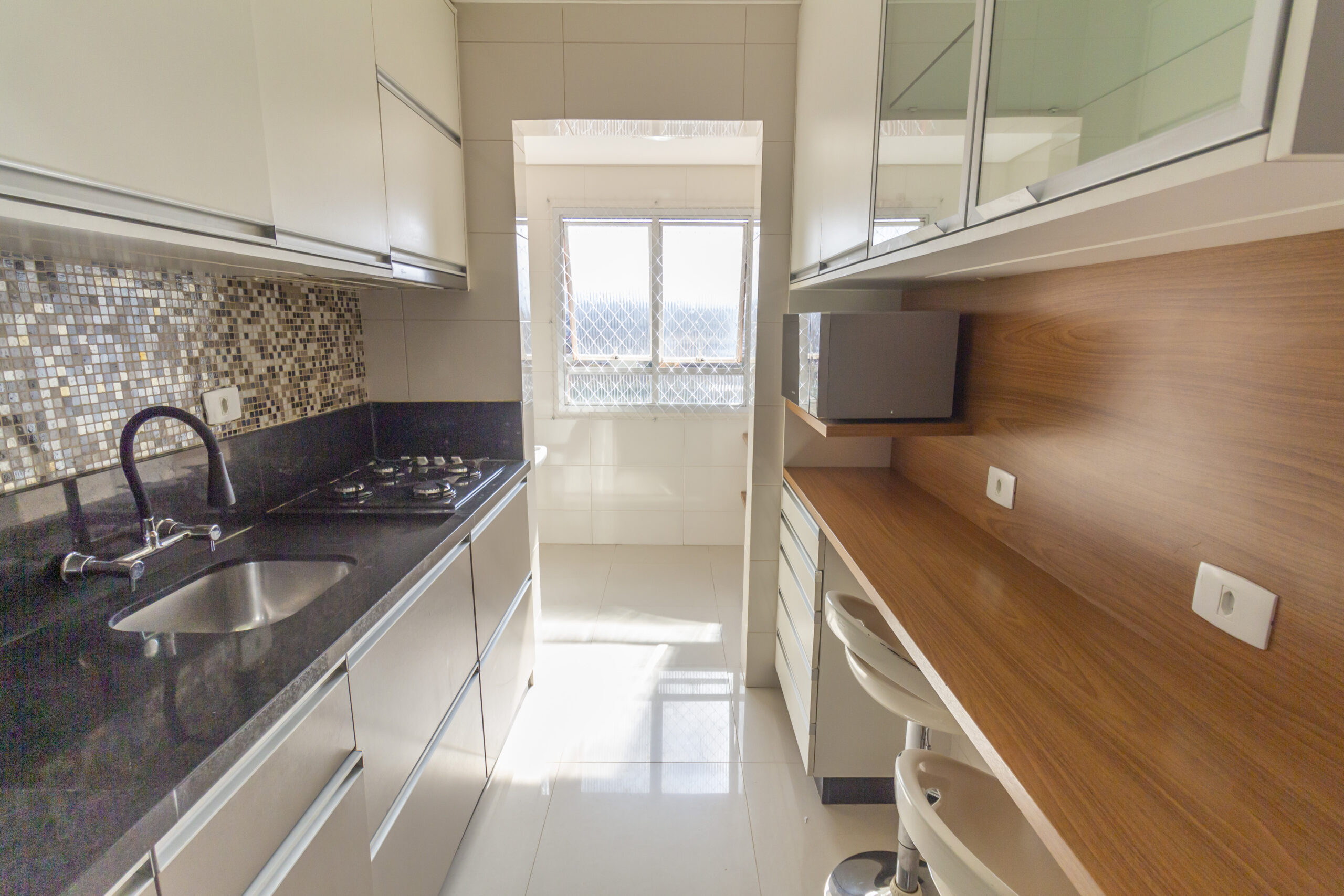 Cozinha gourmet com bancadas em granito;