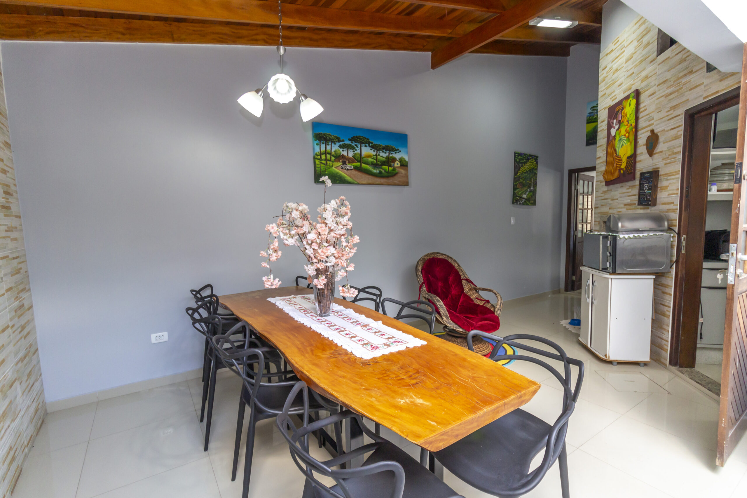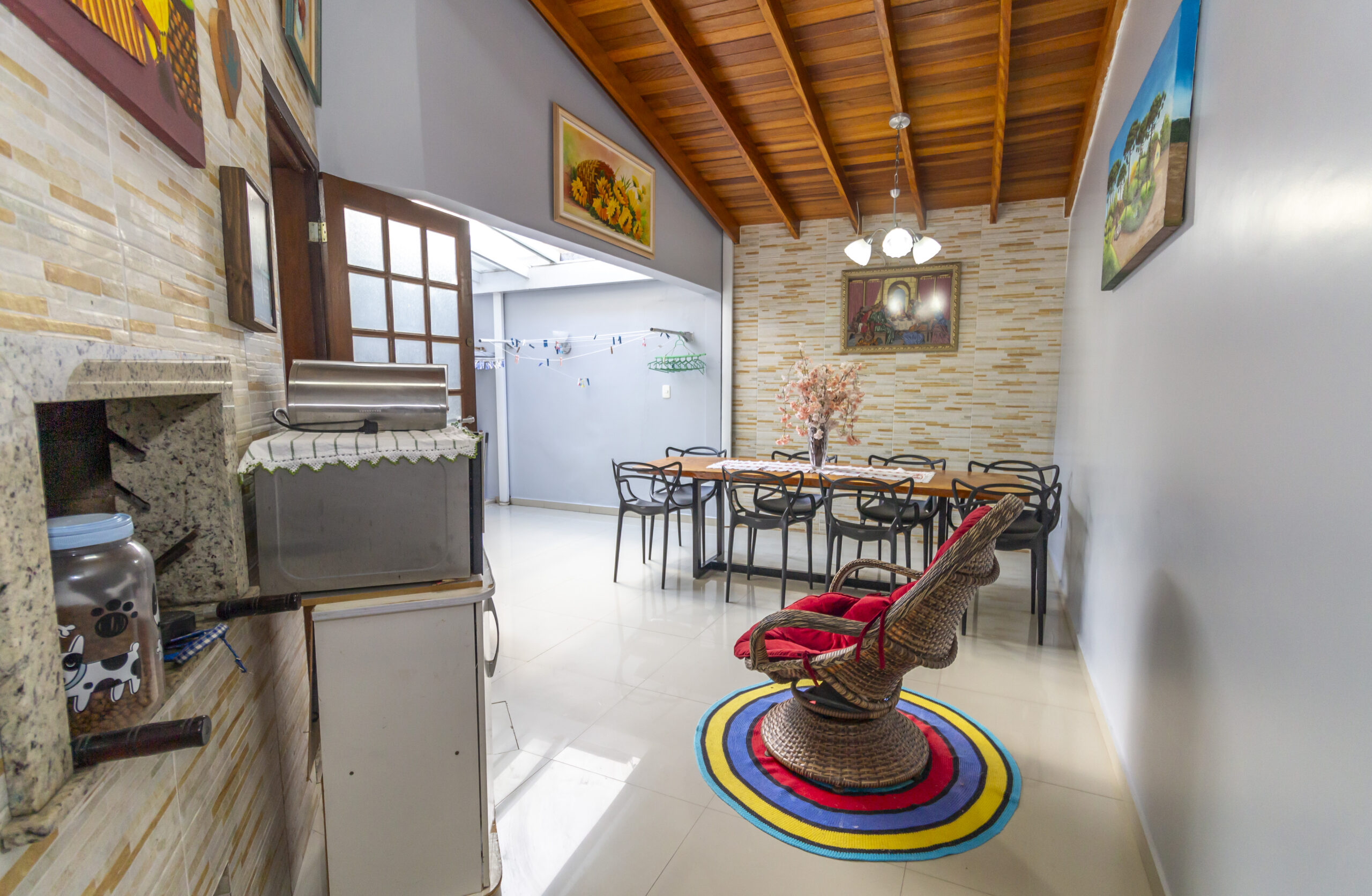 Área externa ampla, com churrasqueira cobertura retrátil;